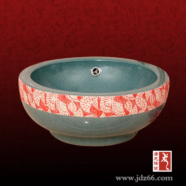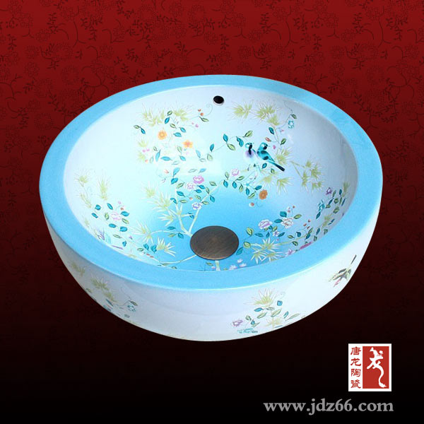 現(xiàn)在臺上洗臉盆的種類有很多,其中陶瓷臺上盆最受人們喜愛,尤其是景德鎮(zhèn)生產(chǎn)的陶瓷臺上盆,用上等高嶺土高溫?zé)疲砻婀に囀怯擅矣H筆繪畫,不但畫工精美而且健康環(huán)保,盛放冰 水開水都不會分解出任何有害物質(zhì)。