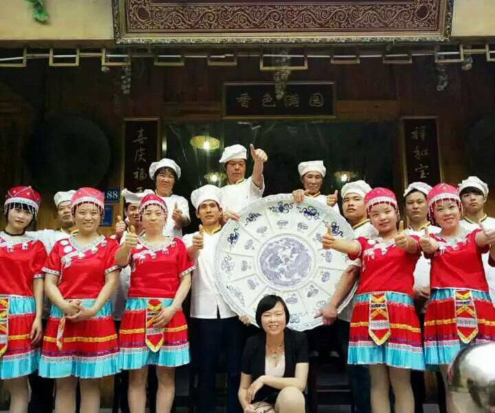 陶瓷大盤特別適用于新型概念酒店取代傳統(tǒng)小盤。器皿獨特的“大”與素 雅的青花很是吸引顧客的食欲。我們現(xiàn)以為廣東番禹“漁哥”酒樓、廣東開平的“一品天下”酒樓、大連“尚品家”酒樓、“膠東第一盤”、“萬達嘉華酒店”“石家莊金牌驢肉宴”等為一些國內(nèi)知名酒店定做過青花瓷大盤。
