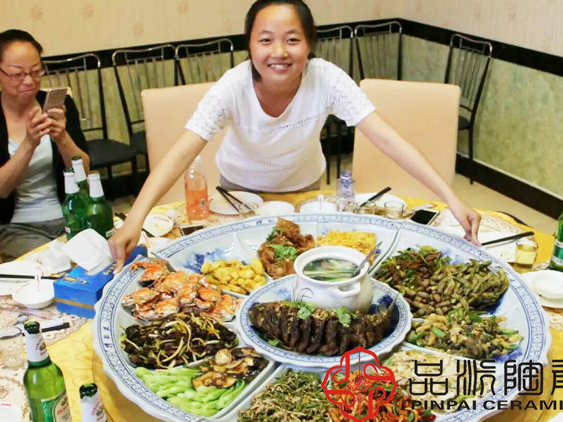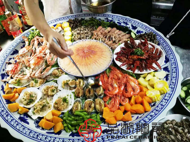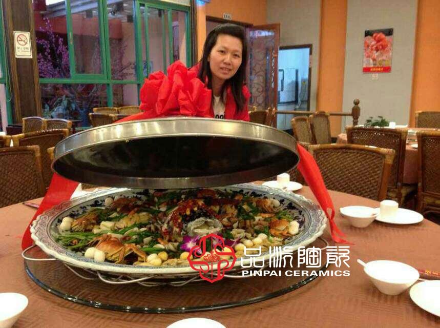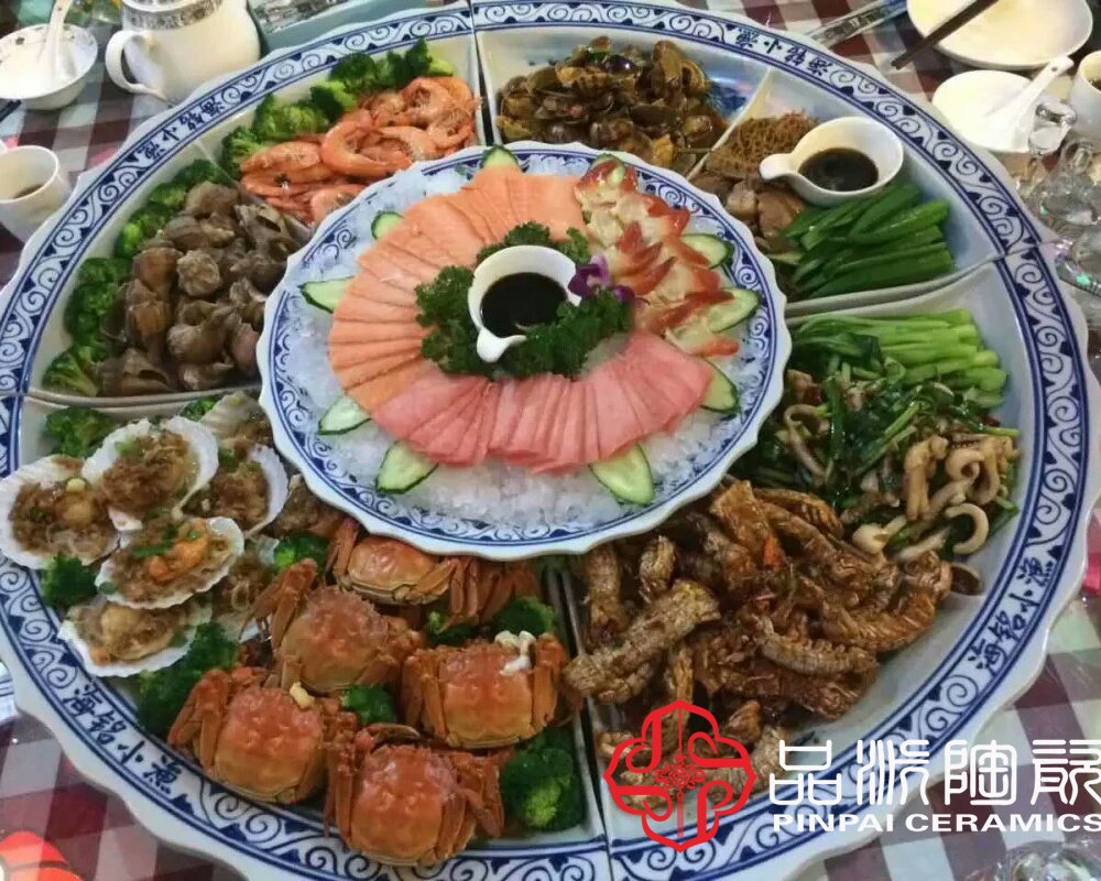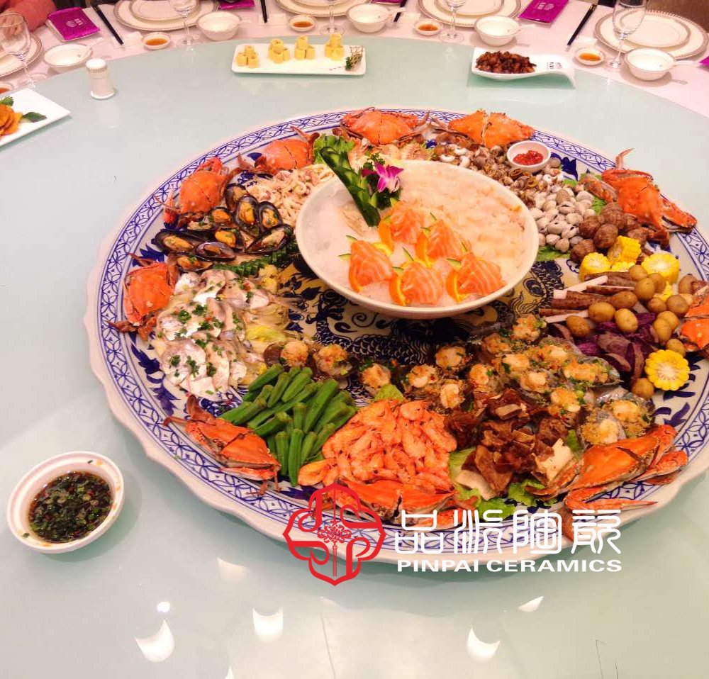 我們在2012年首次推出酒店海鮮大魚盤以來。其瓷盤超大、上菜氣場非凡、耐高溫、不易碎等優(yōu)點。為全國酒樓創(chuàng)新菜系開拓出光輝一面。在走過風風雨雨幾年春秋。從最初的普通蒸汽海鮮平盤、到總結(jié)客戶需要。為使得中式菜系能夠使用的我們的盤。我們推出了整體分格瓷盤。通過手工分根據(jù)客戶需求分格出一塊塊小格子,每道菜中間有阻攔,湯水之間就避免的串味。因為我們的盤子不僅裝菜拼盤獨特,其直徑是其她日用盤不能比擬的,盤子實在是太大,如酒樓包廂裝修門的直徑一般在90cm如一塊一米直徑的大盤不可進入包廂。在進行總結(jié),把整體大盤分格城四塊到包廂組合成大圓盤,其工藝復雜程度全程手工制作。雖說大盤屬于是日用瓷。但制作過程不亞于一件藝術(shù)品。