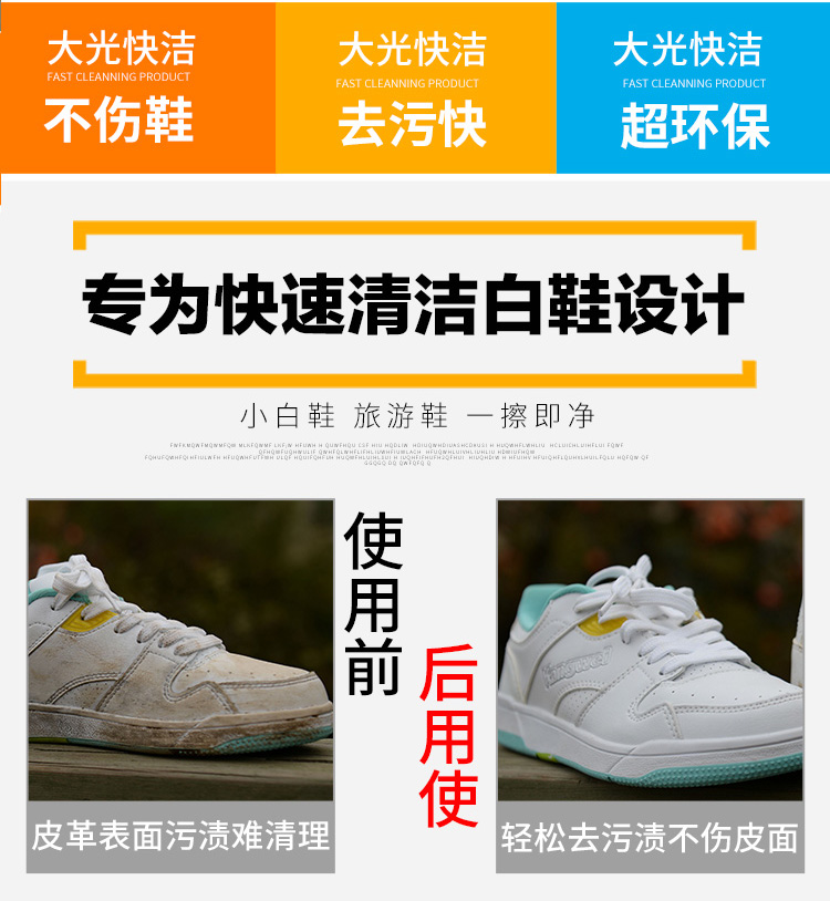 經(jīng)濟(jì):可反復(fù)多次使用,每包可清潔小白鞋100雙以上。