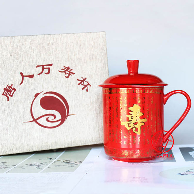 景德鎮(zhèn)合元陶瓷廠生產(chǎn)的一款中國紅壽杯深受大眾喜愛,此款中國紅陶瓷壽杯采用是優(yōu)質(zhì)骨質(zhì)瓷為原料,壽杯身的圖案采用金色,有龍鳳圖案后者定制百壽字,畫面都是可以根據(jù)客戶要求定制,百歲壽辰回禮壽杯大部分是贈(zèng)送對(duì)杯,選用精美禮盒或者錦盒包裝,一份gao檔的壽辰禮品。