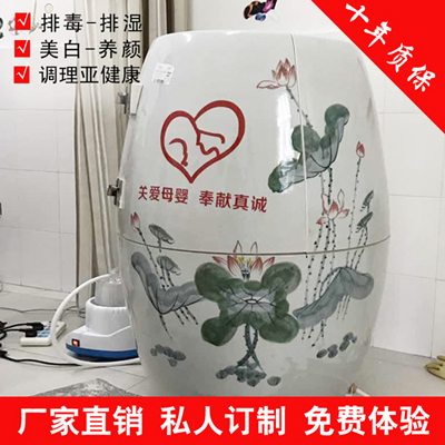 和天下負(fù)離子磁蒸甕外觀整體呈卵形、中空、甕體以養(yǎng)生巖寶粉 與陶土混合后經(jīng)過成泥、雕刻、燒制、制模、風(fēng)干、上釉、繪畫、打磨等九道工序精心燒制而成,其內(nèi)壁以特定規(guī)則密布2000多顆銅錢般大小的養(yǎng)生巖寶石(708號礦石)。通過二合一調(diào)節(jié)器將蒸汽輸入甕內(nèi),使甕內(nèi)達(dá)到38-42℃的高溫,在此溫度下甕壁內(nèi)2000多顆巖寶石釋放大量負(fù)離子、遠(yuǎn)紅外線,并且巴馬負(fù)離子磁蒸甕可以形成一個禁錮的650高斯四相脈沖磁場,人體一旦進(jìn)入其中,在人體表面形成一個負(fù)壓脈沖磁場,提高人體循環(huán)系統(tǒng)及肌肉組織的吸收功能,有效激活人體細(xì)胞的活性。人體吸收8000個負(fù)離子就能改善體質(zhì),和天下負(fù)離子磁蒸甕內(nèi)每cc的 ,不僅有益健康,更能有效調(diào)節(jié)人體亞健康狀態(tài)。
