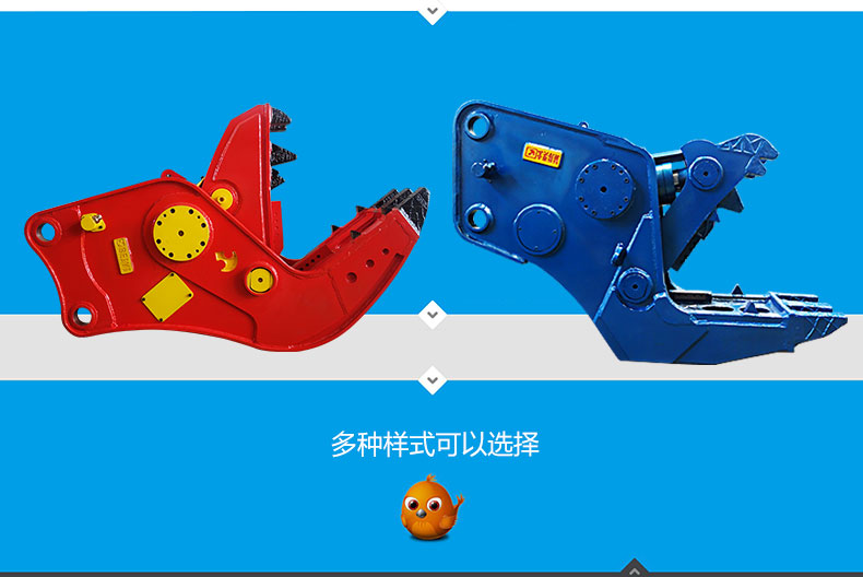 力道強勁=超高效率1、工作效率是破碎錘的二至三倍。 2、粉 碎鉗可以出色的完成一系列作業(yè):即將鋼筋從混凝土塊中分離出來,折彎并裝載到卡車上,從而明顯的提高了工作效率。 3、作業(yè)完全機械化,安 全又省時。 大開大闔=提高效率1、咬合密實間隙小,操作靈活。 2、大開口設計,工作輕松、方便。 3、裝有鋼筋切斷器,粉 碎鉗可以同時進行兩項作業(yè),粉 碎混凝土并切斷暴露的鋼筋,使破碎作業(yè)效率更高。 堅固耐用=節(jié)約成本1、采用瑞典高硬度輕質鋼材,堅實無比! 2、充分了解中國市場使用習性,針對磨耗部件及結構件重點強化,壽命加倍! 3、顎齒制成了特殊形狀用以牢固的固定混凝土塊,楔入并粉 碎,以便進行快速軋碎。顎齒非常堅固,具有高耐磨性。 輕便快捷=創(chuàng)造效益1、拆裝容易,獨家油路設計,不僅油缸速度加倍,并且可與破碎器通用,一機多任務。 2、低噪音無振動,滿足環(huán)保要求,適合城市與高新園區(qū)的拆除工程。 3、液壓油缸配有護蓋,用以阻攔混凝土塊和鋼筋的飛濺碎屑。