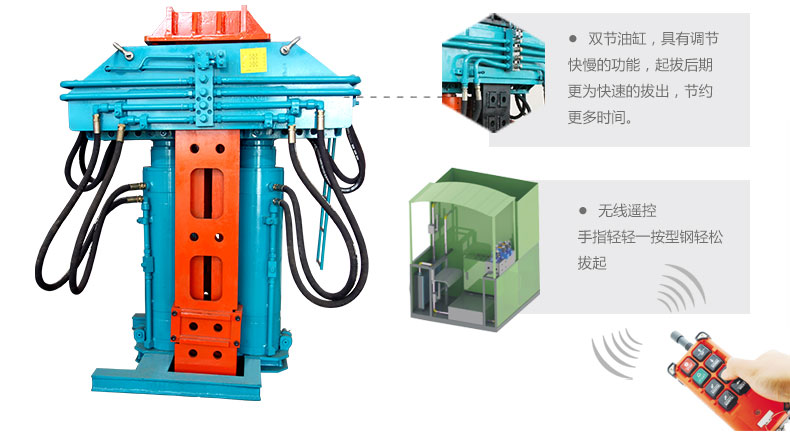 1. 一體式起吊設(shè)計雙節(jié)油缸,具有調(diào)節(jié)快慢的功能,起拔后期更為快速的拔出,節(jié)約更多時間。