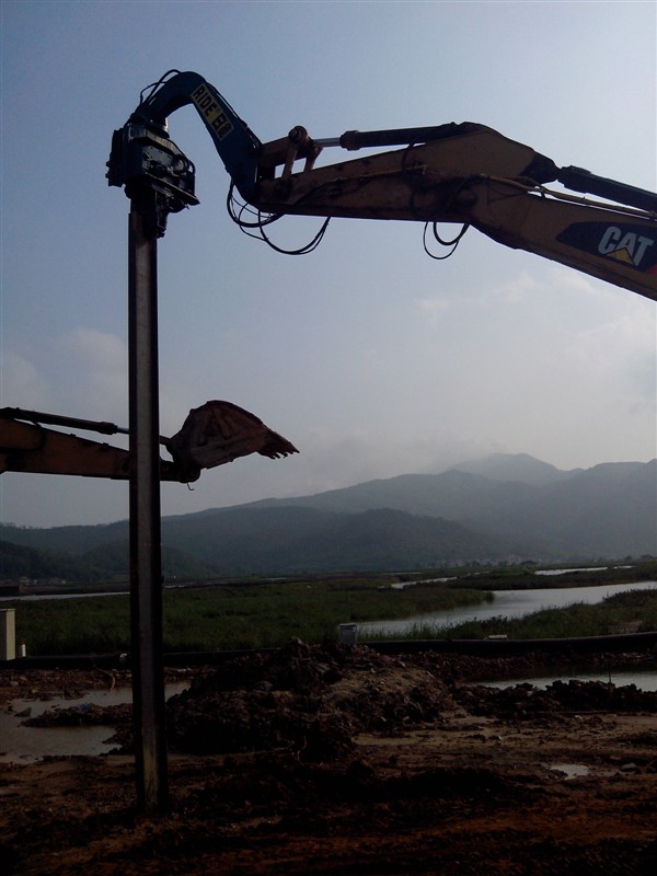 挖掘機(jī)改打樁機(jī)|配振動(dòng)錘打鋼板樁6 9 12 14 16米