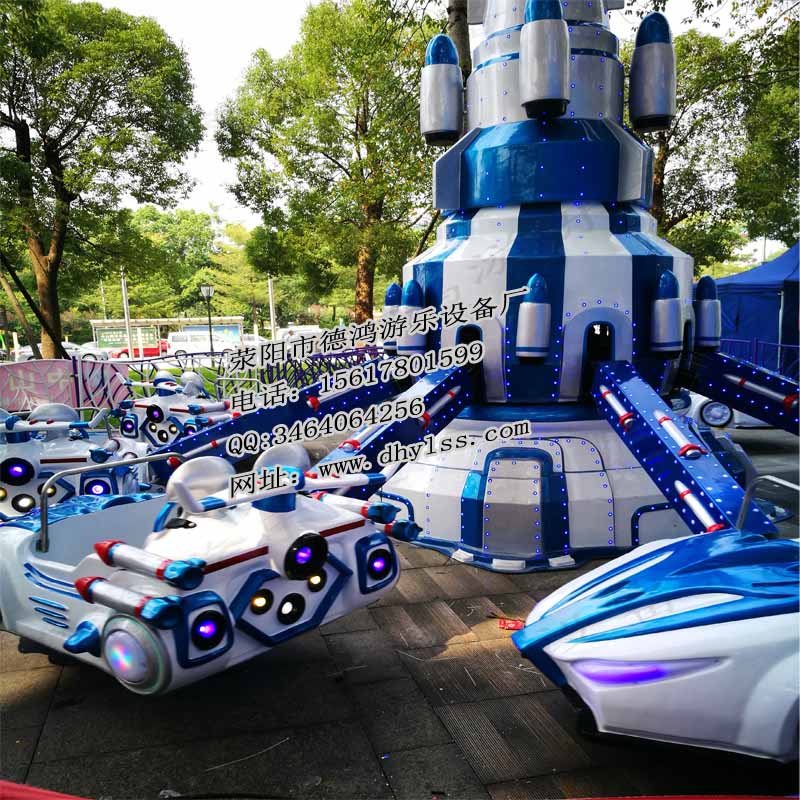 滎陽市德鴻游樂設備廠生產設計的8臂16座自控飛機采用的是液壓控制系統(tǒng),每個大臂上有兩個座艙,一共可以坐16人,乘客坐在座艙中,飛機圍繞中心火箭或其他造型的裝飾旋轉,并由游客在飛行中自行控制操縱桿隨意升降,互相追逐、射擊,是一種互動性很強的游樂設備。深受兒童的喜愛。