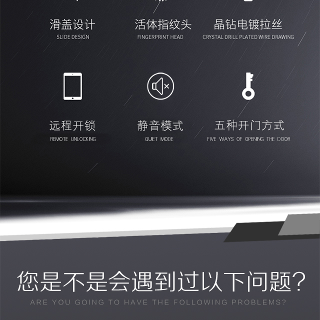 滑蓋保護(hù):行業(yè)首創(chuàng)滑蓋專利設(shè)計(jì),自動上電,防潮防塵,保護(hù)鎖體,使用壽命更持久。