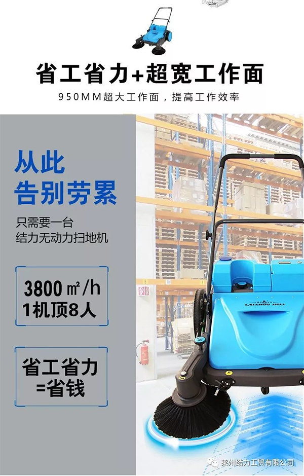 jl950s清潔全能王手推式無動力掃地機是一種集多種無動力掃地機優(yōu)點于一體的新型掃地機。優(yōu)化的底部空間,適用于清掃各種地面的各種垃圾。前端兩個噴頭噴出高壓水霧,輕松抑制揚塵。后端增設強制排氣過濾裝置,避免二次污染。