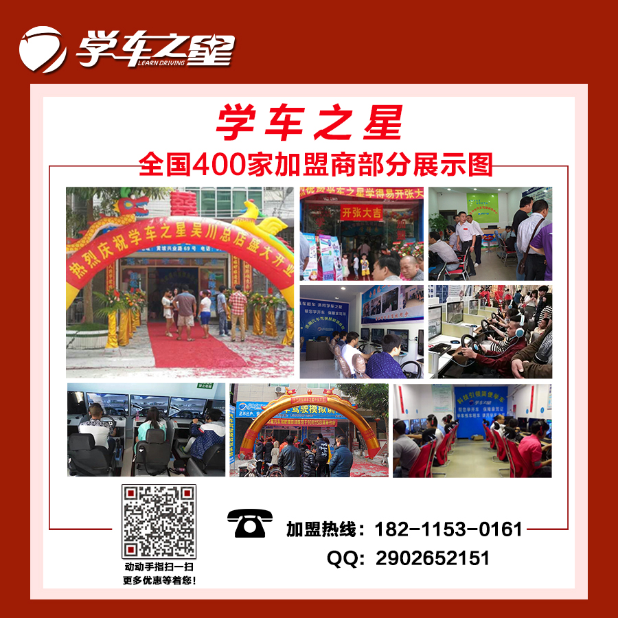 學(xué)車之星駕吧加盟現(xiàn)如今深得廣大消費者的喜歡,當(dāng)人們都在選擇更好的加盟項目時,或許你還沒有意識到,其實駕吧加盟項目就是好的選擇, 如果您對我們的項目感興趣的話,可以聯(lián)系我們!