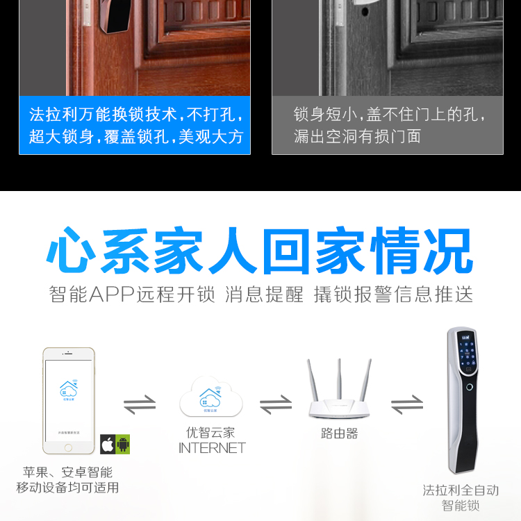 全自動指紋密碼鎖無法通過貓眼開啟,更安 全。