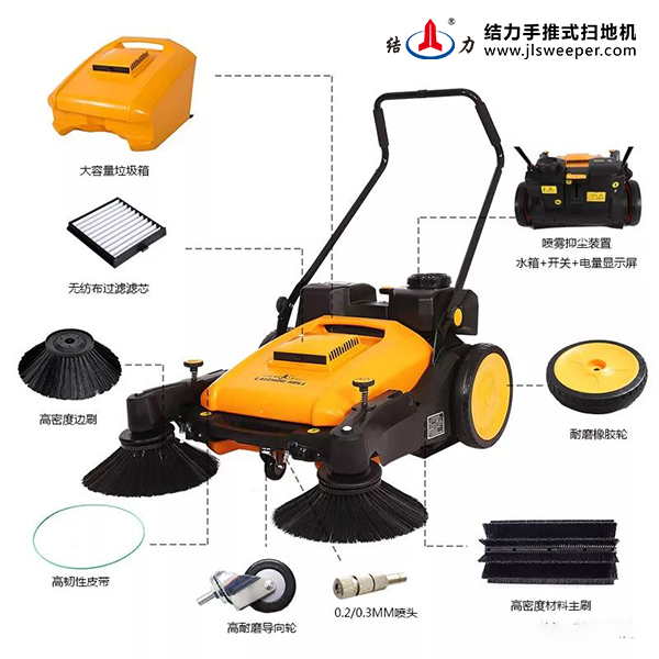 結(jié)力手推式掃地機(jī),電動(dòng)掃地車,噴霧掃地機(jī),無動(dòng)力掃地機(jī)可清掃鐵屑、顆粒料、粉 塵、樹葉、紙屑、煙蒂、沙土等垃圾。