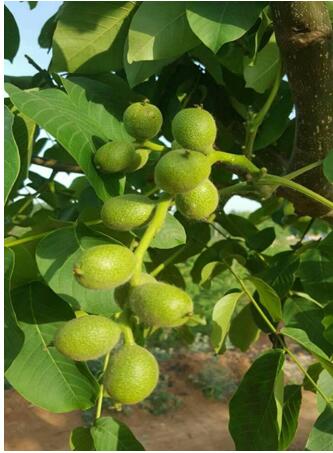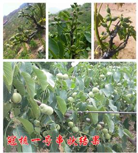 冠核一號(hào)核桃苗第一特性:早實(shí)性:冠核一號(hào)核桃苗當(dāng)年栽植,當(dāng)年見(jiàn)果,見(jiàn)果率可達(dá)70%。個(gè)別單株可見(jiàn)20多個(gè),呈現(xiàn)穗狀,這是核桃歷史的又一次飛躍。