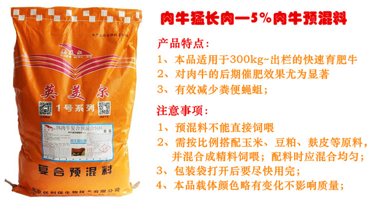 下面介紹一款肉牛后期專用預(yù)混料-5%肉牛猛長肉