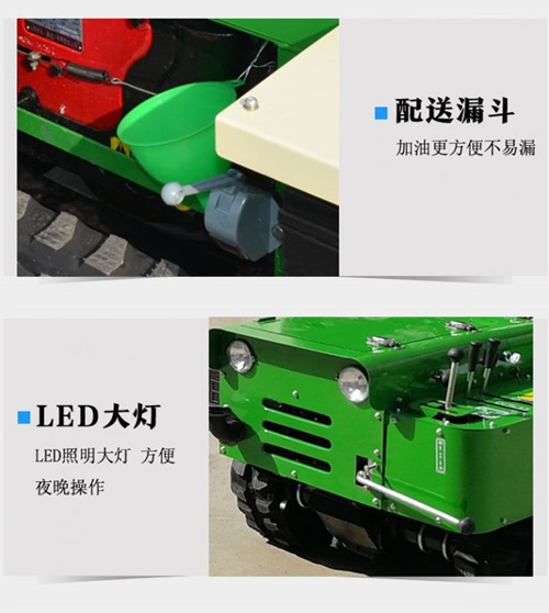 耐用:機(jī)身加厚,做工精密,履帶式行走,可進(jìn)行原地360度轉(zhuǎn)向。刀具都是加厚75號(hào)猛鋼鍛造,非常耐磨耐用,工作效率高.