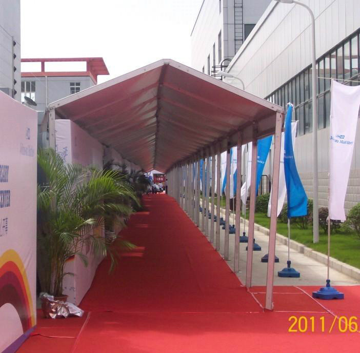 亞太篷房有限公司是專業(yè)化研制、租賃、銷售系列高品質(zhì)篷房的企業(yè),一直信守“以質(zhì)量求生存、以服務(wù)求信譽(yù)、以創(chuàng)新求發(fā)展、以低廉的價(jià)格贏取市場(chǎng)”的理念;在承襲了國(guó)內(nèi)外先進(jìn)制造技術(shù)的同時(shí),將服務(wù)于大型展覽會(huì)、博覽會(huì)、室外臨時(shí)/長(zhǎng)期展館、巡回展、餐飲區(qū)(啤酒節(jié)、美食節(jié))、公司慶典、體育休閑、倉(cāng)儲(chǔ)庫(kù)房等各類戶外活動(dòng),開發(fā)產(chǎn)品靈活多樣、安 全穩(wěn)固、安 裝快捷、易拆除等提高環(huán)境保護(hù)特點(diǎn)獲得客戶的一致好評(píng)。咨詢熱線:13906125228.我公司立足市場(chǎng),打造全新服務(wù)理念:“流動(dòng)式房產(chǎn)”。它可為在室外舉行的展覽會(huì),博覽會(huì),宣傳,慶典,晚會(huì)等提供大型的商務(wù)活動(dòng)場(chǎng)所,也可作為廠礦企事業(yè)單位的長(zhǎng)期或臨時(shí)的倉(cāng)儲(chǔ)設(shè)施。我公司為配合日益增長(zhǎng)的中國(guó)市場(chǎng)的需求及更好的為2008年北京奧運(yùn)會(huì)等國(guó)內(nèi)外客戶服務(wù),將憑借嚴(yán)格的管理,高質(zhì)量高效率的工作、熱情的售后服務(wù),不斷地從專業(yè)化向品牌化方向發(fā)展。以誠(chéng)信、嚴(yán)謹(jǐn)、完善的風(fēng)格服務(wù)于社會(huì)各界,為您的戶外活動(dòng)更添精彩。本公司以:“客戶的要求,是我們的追求;客戶的微笑,是我們的目標(biāo)!睘樽谥,合理優(yōu)化管理,不斷開拓創(chuàng)新,完善售后服務(wù),來(lái)贏取用戶的一片喝彩!產(chǎn)品特點(diǎn):1.優(yōu)質(zhì)鋼鋁結(jié)構(gòu),鋁型材構(gòu)成,堅(jiān)固安 全.2.高強(qiáng)度合成纖維加雙層pvc材料、抗風(fēng)、防雨、防曬、阻燃.3.適用多種場(chǎng)地(如:公園草坪、廣場(chǎng)、海灘等),裝拆簡(jiǎn)便,是室外展覽的理想產(chǎn)品.4.可按客戶要求定產(chǎn)品規(guī)格大小,篷布可折疊,框架拆卸后體積小,便于運(yùn)輸和儲(chǔ)存.5. ·簡(jiǎn)易的搭建和拆卸.·篷房跨度有3米-50米等.·篷房?jī)?nèi)部無(wú)需承重支柱,場(chǎng)地得到100%使用.·單位組合式結(jié)構(gòu),可根據(jù)場(chǎng)地的大小自由增加或分割搭建.·對(duì)搭建場(chǎng)地?zé)o特殊要求,一般平地如草地,瀝青地,水泥地均可.
