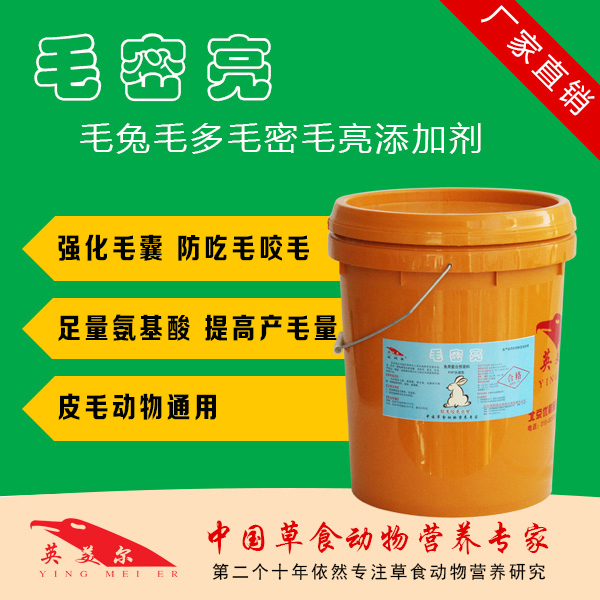北京英美爾專業(yè)生產(chǎn)兔飼料添加劑 ,專門組織兔營養(yǎng)研究人員從兔的營養(yǎng)需求角度,針對一般兔場兔毛密度稀、光質(zhì)差、脫毛、咬毛這一嚴重現(xiàn)象,而研制出集生長與治療雙重效果的高科技產(chǎn)品-毛密亮。