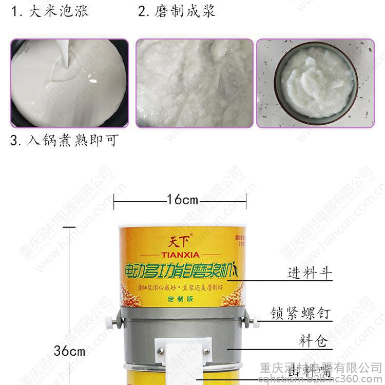 富硒長壽之鄉(xiāng)重慶市江津區(qū)生產(chǎn)的天下牌電動磨漿機目前正在火熱銷售,