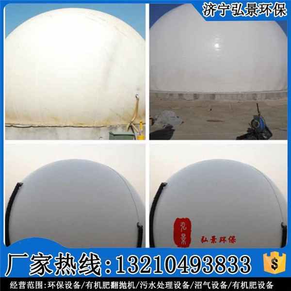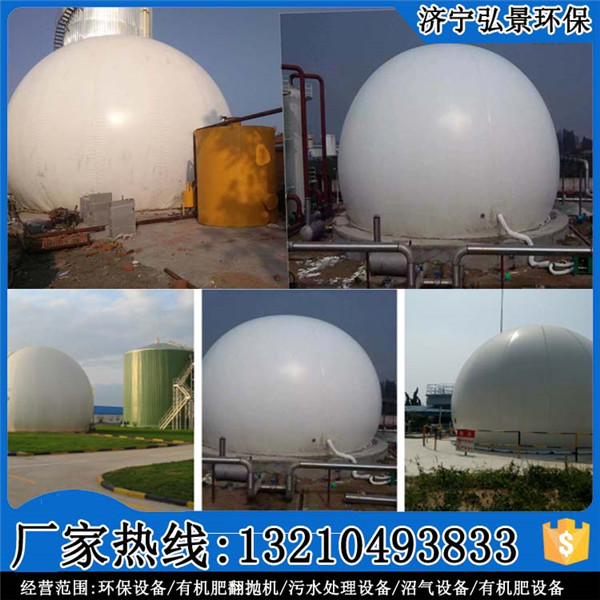 內(nèi)膜適用氣體恒壓輸出并對內(nèi)膜起到保護作用,外膜截面與內(nèi)膜及底膜的邊緣或發(fā)酵罐口連接。自動化集氣恒壓系統(tǒng)在內(nèi)外膜之間形成一個恒定壓力的獨立儲存空間作為穩(wěn)定氣柜和起到恒壓作用。也就是說用一個軟體球形作為儲氣柜,儲存的氣體容積變少控制設備就自動充空氣填補,儲存氣體增多安 全保護器就釋放空氣以平衡壓力。為不讓氣體混合,儲存的氣體與空氣之間使用內(nèi)膜隔離開。