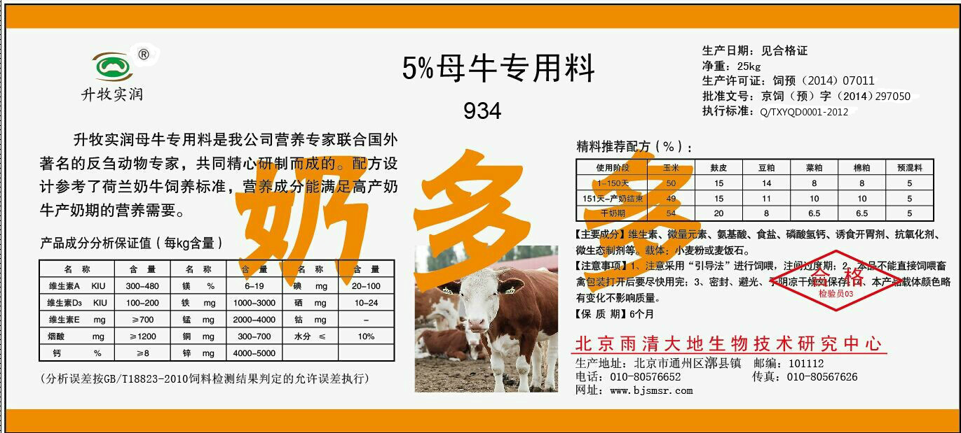 飼養(yǎng)奶牛的收入, 主要來源于成年母牛的產奶量。奶牛產奶水平的高低取決于兩個因素 , 即遺傳和環(huán)境。遺傳上的產奶潛力要變?yōu)楝F實的產奶量, 就不斷改進和提高飼養(yǎng)技術。因此,根據高產奶牛的生理特點, 進行合理的飼養(yǎng)管理,以充分發(fā)揮母牛遺傳產奶潛力, 獲得較高的產奶量,是當前牛業(yè)亟待解決的問題。5%奶牛復合預混料是北京升牧實潤公司組織多名動物營養(yǎng)專家,根據國內外奶牛最新營養(yǎng)研究進展結合產奶期奶牛對營養(yǎng)需求的特點,研制出一種能滿足奶牛產奶期營養(yǎng)需要的綠色高檔奶牛專用預混料--5%奶牛預混料~