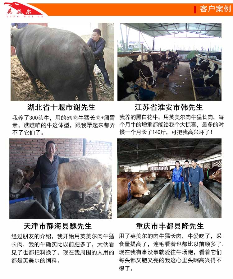 2、本品添加了多種有機(jī)稀土、益生菌及未知促生長(zhǎng)因子,對(duì)牛的后期催肥效果更加顯著;