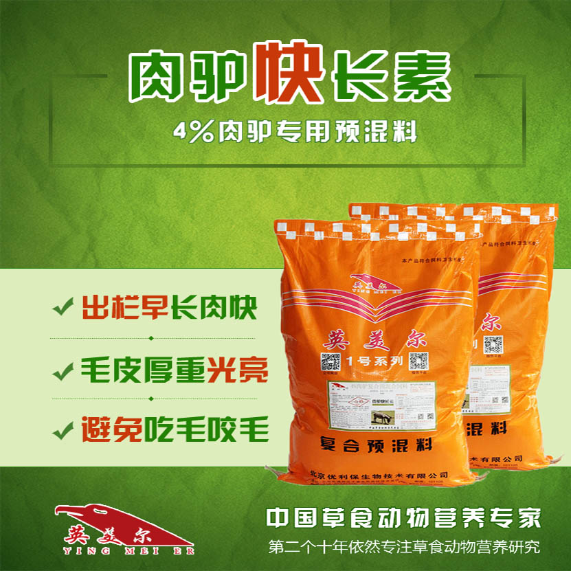 在精飼料中添加英美爾牌4%肉驢預(yù)混料,能有效補(bǔ)充肉驢生長所需的礦物質(zhì)、維生素 和氨基酸 ,快速提高肉驢生長速度,實(shí)現(xiàn)肉驢快速催肥。